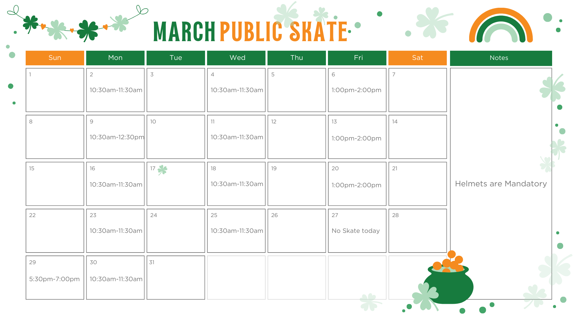 PUBLIC SKATE SCHEDULE